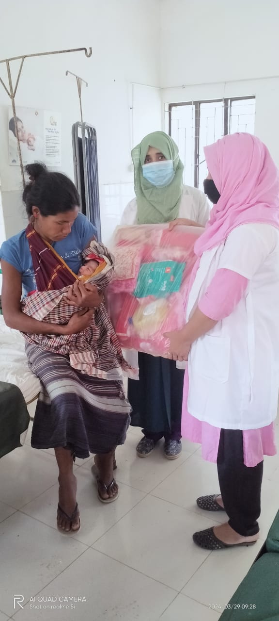 প্রাতিষ্ঠানিক ডেলীভারী করায় রোগীকে হাসপাতালের পক্ষ থেকে উপহার সামগ্রী প্রদান